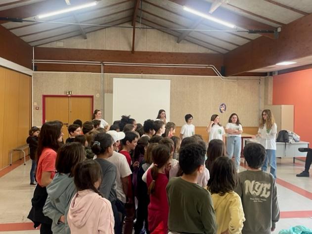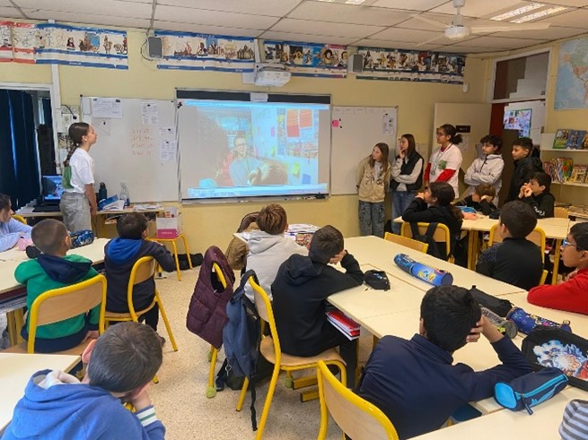Depuis fin mars, les ambassadeurs de l’équipe Bienveillance du Collège Château Double se sont rendus dans les écoles de secteur pour intervenir devant les classes de CM1-CM2 sur le phénomène d’intimidation scolaire. Cette action a double objectif : prévenir les violences scolaires et entretenir la liaison école-collège.