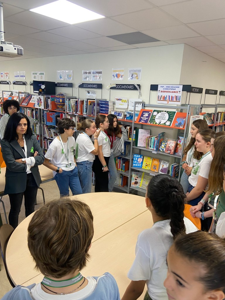 Ambassadeurs, élus et Direction du collège sont allés au CDI pour inaugurer la bibliothèque Bienveillance créée par les élèves engagés. Cet espace propose une sélection d’ouvrages (fictions et documentaires) sur le thème du vivre ensemble, du harcèlement et de l’égalité filles-garçons. Ils ont aussi présenté le mur d’expression, les marque-pages et les critiques de livres sélectionnés pour l’occasion. Enfin, le coin lecture zen a été officiellement ouvert. Cet espace propice à la détente proposera des ouvrages visant à développer les compétences psychosociales.