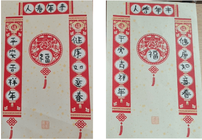 Les chun lian sont des souhaits écrits au pinceau sur du papier de riz rouge que l’on colle de chaque côté de la porte d’entrée et au-dessus, à la manière d’un couplet ou d’un court poème. (Élèves de 4e serpent 蛇 )