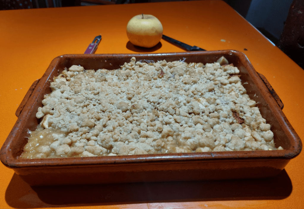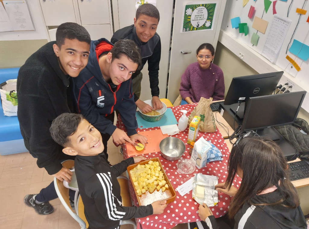 Le jeudi, nous avons préparé un crumble : éplucher des pommes, mesurer la farine, le sucre, le beurre et sabler la pâte.
