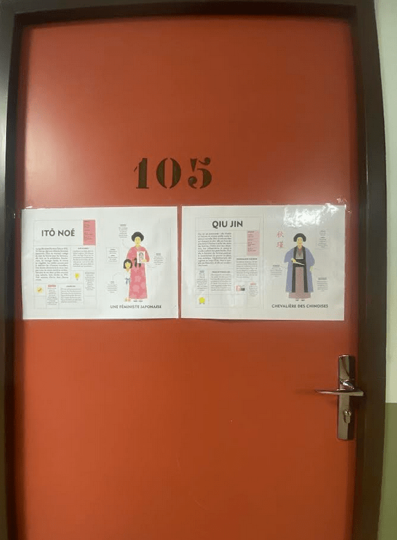 De plus, pour mettre à l’honneur des femmes célèbres et les faire connaitre aux élèves du collège, les salles de cours et administration ont toutes été rebaptisées avec des affiches de femmes qui ont marqué l’histoire. Les élèves ambassadeurs aidés de Julie, membre de l’équipe Bienveillance, ont minutieusement sélectionné des femmes en lien avec les thématiques des différents enseignements.