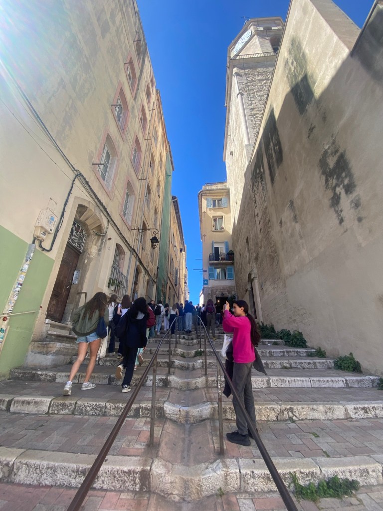 Après un week-end passé dans les familles, les élèves se sont rendus lundi 31 mars à Marseille pour une visite de la grotte Cosquer, du Fort saint Jean et de Notre Dame de la Garde après une balade en petit train le long de la corniche Kennedy.