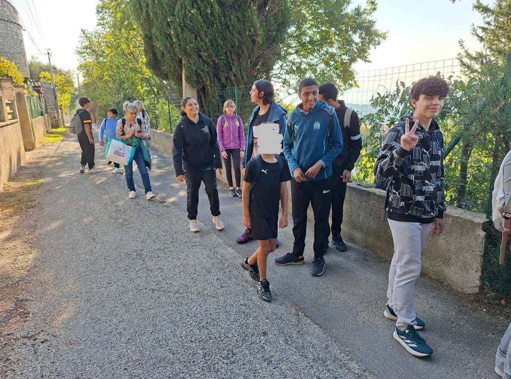 En octobre, les élèves du dispositif ULIS ont commencé à visiter les lieux d’habitation de certains élèves. En premier, ils ont découvert à pied le quartier Saint-Mitre. Ils ont contourné le centre commercial, ils en ont profité pour déposer des cartes postales dans une boîte aux lettres. Puis ils ont vu une station essence et des bus électriques. Les élèves guides ont donné des explications sur leur quartier. À la fin du trajet, ils ont mangé un goûter offert par Anne au Parc Saint-Mitre et écouté Kalenzo jouer de la guitare et chanter. C’était l’occasion d’offrir à Anne des petits cadeaux pour son départ à la retraite.