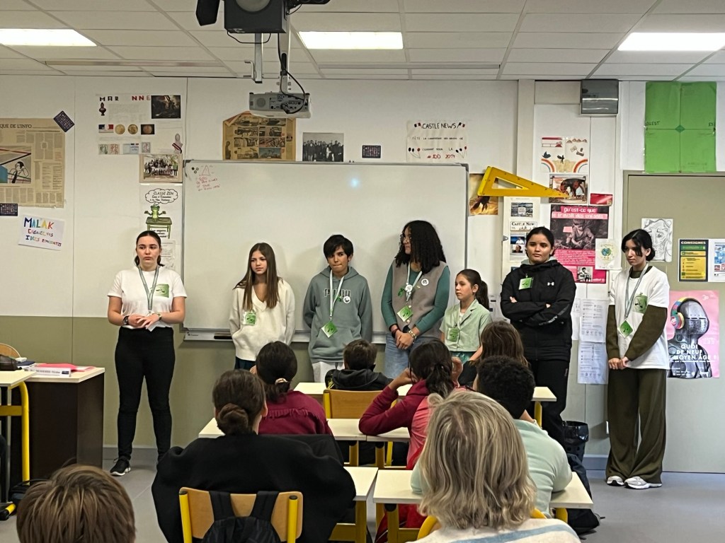 La journée du 6 novembre a permis de mettre en lumière le rôle essentiel des ambassadeurs contre le harcèlement. Ces élèves engagés ont animé des heures de vie de classe auprès des 6e et 5e, proposant des discussions, des débats et des jeux pour favoriser l’expression, l’écoute et l’entraide. Ils ont également assuré la distribution de pin’s symboliques et participé à la diffusion, en salle de permanence, de vidéos de sensibilisation réalisées ou sélectionnées dans le cadre du projet. Un montage vidéo aérien, réalisé par drone dans la cour de récréation, a été diffusé en interne pour valoriser la mobilisation de l’ensemble de la communauté éducative.