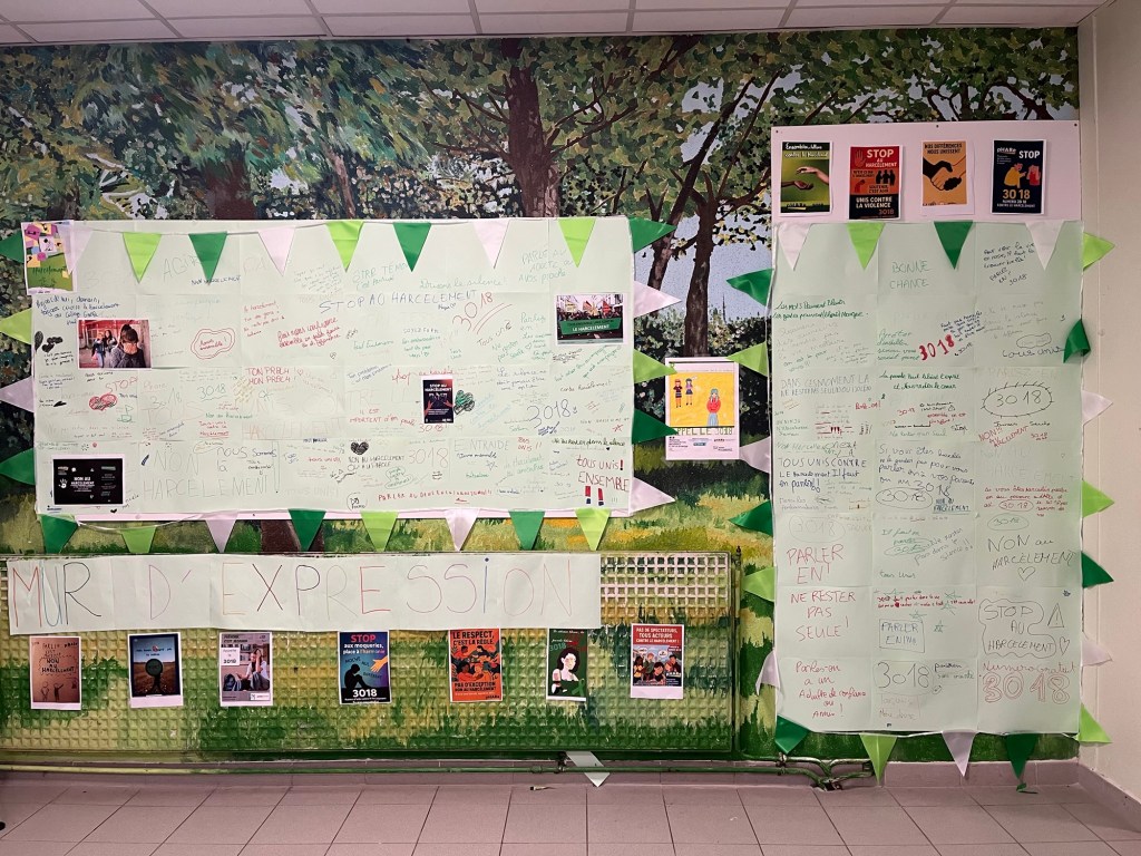 Un mur d’expression a permis aux élèves de s’exprimer librement sur le thème du respect et de la solidarité. La récréation a donné lieu à un moment fédérateur avec la formation d’une chaîne humaine portant le message « Tous unis », rassemblant élèves et personnels autour d’une posture commune de vigilance et de bienveillance. Des musiques portant sur la thématique du harcèlement ont ponctué cette mobilisation.