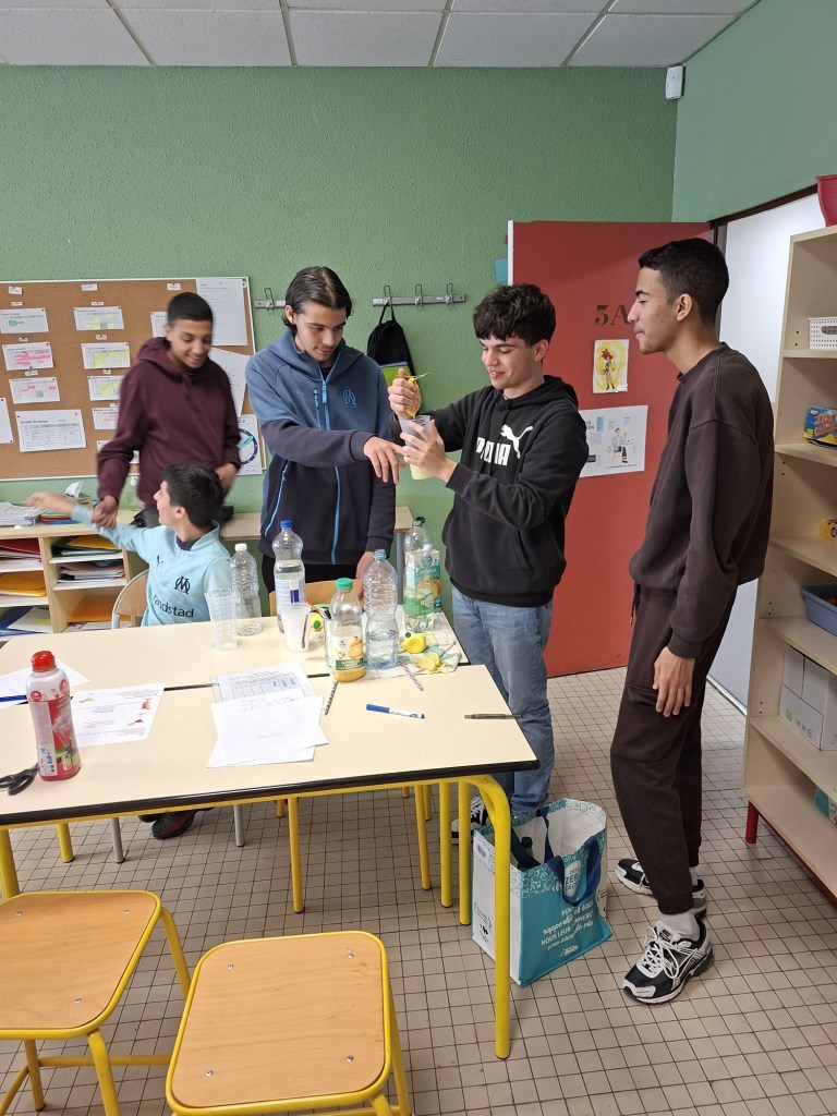 Les élèves ont goûté les différents cocktails et ont donné leur avis sur le goût : sucré, acide et amer.