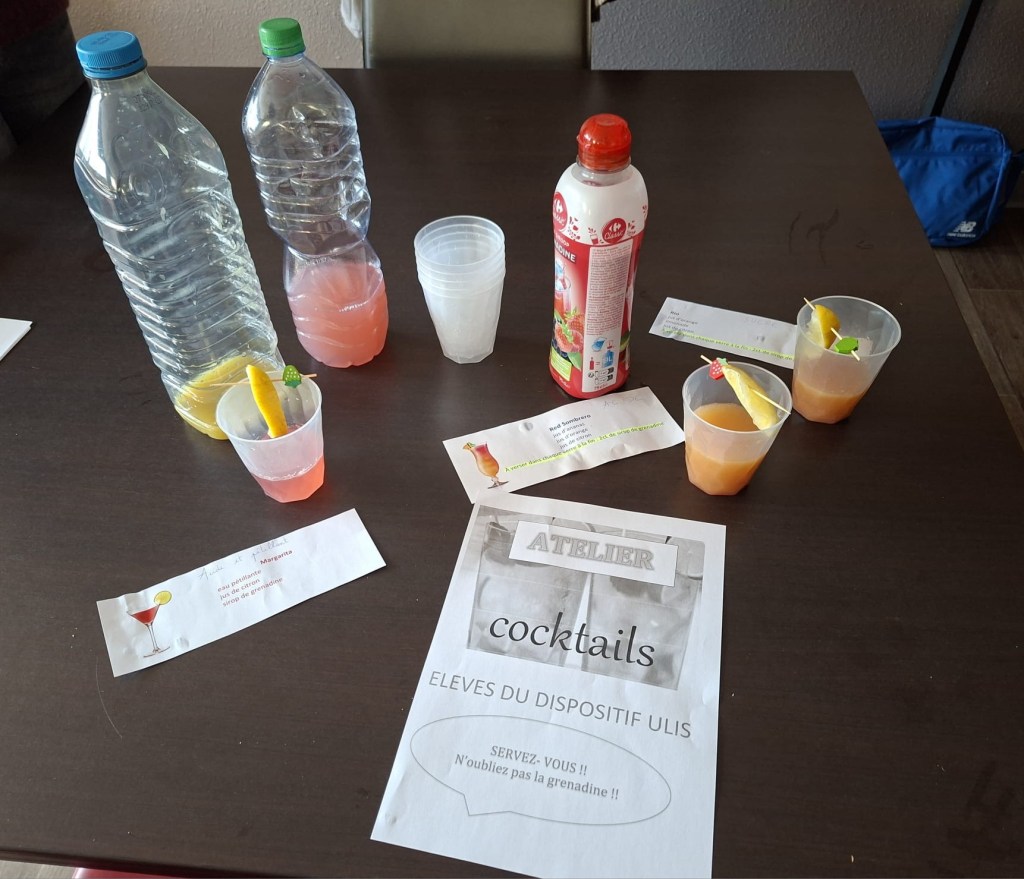 Au cours de la semaine du 23 mars 2026, les élèves du dispositif ULIS ont préparé des cocktails sans alcool, dans la classe.